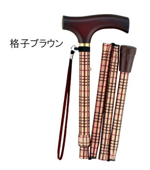 折りたたみSP格子柄ステッキ 格子ブラウン