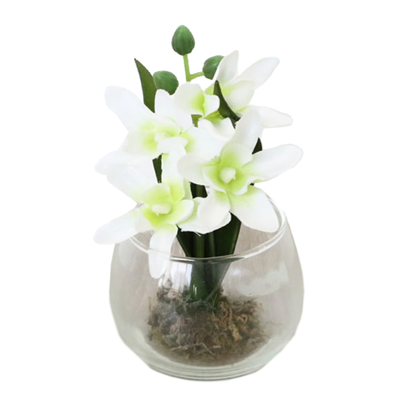 グラスアート ホワイト&ライトグリーン(造花付き) 1308GAP008