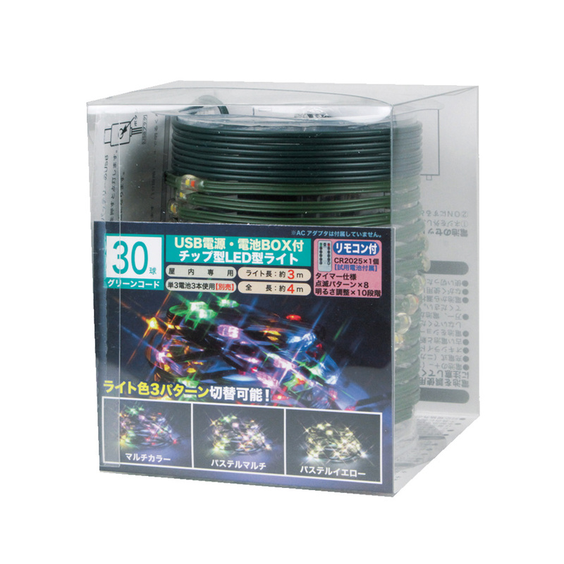 チップ型LEDライト マルチ/パステルイエロー 30球 リモコン付