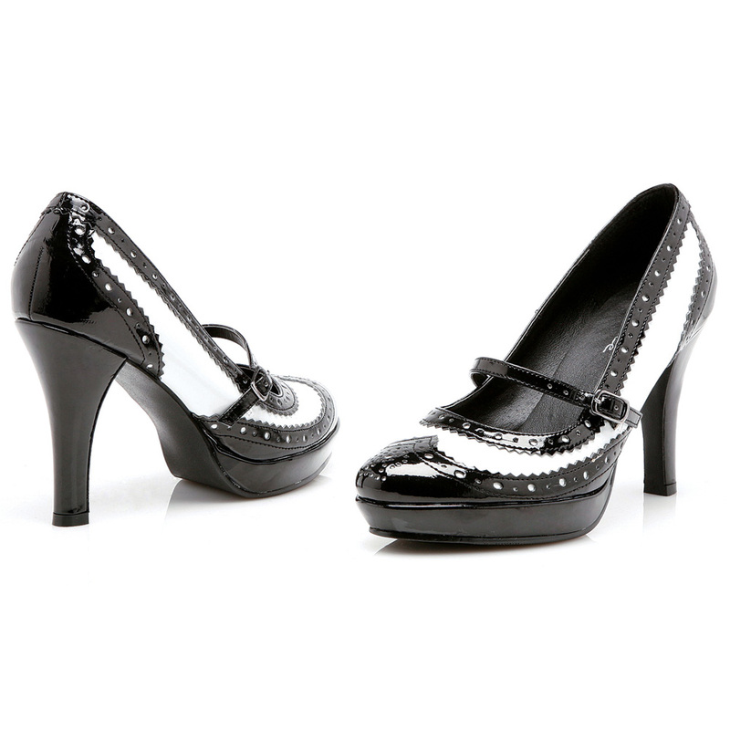 ブラック&ホワイト ストラップパンプス 25cm